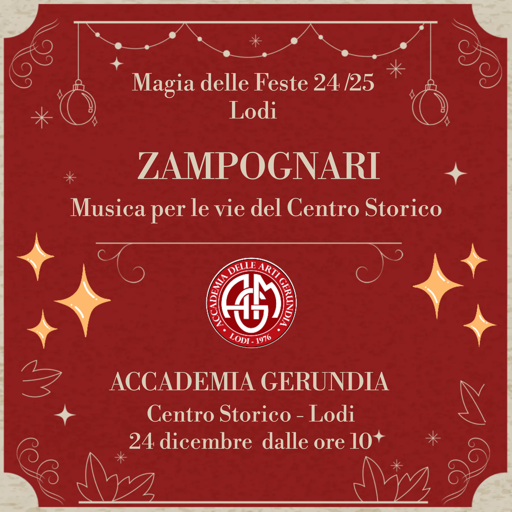 L'evento, che avrà luogo il 24 dicembre a partire dalle ore 10.00, è curato dall' Accademia Gerundia, un punto di riferimento culturale nella città. Un'opportunità unica per vivere la magia del Natale lodigiano e riscoprire le tradizioni musicali del territorio.